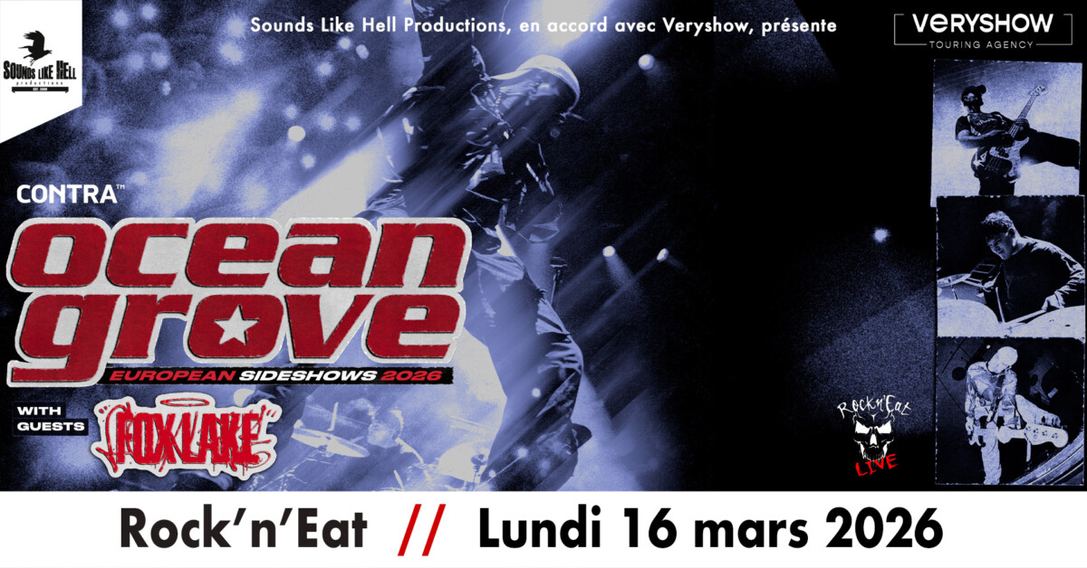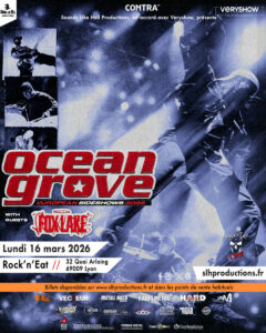 Déflagration en approche ! OCEAN GROVE, trio explosif venu de Melbourne, fusionne Nu-Metal, Hardcore et Rock alternatif pour une tornade transgressive. Le groupe FOX LAKE, en ouverture de soirée, balance un Metalcore massif teinté de Nu-Metal et de Hardcore, brut et engagé, porté par l’intensité de son dernier album.