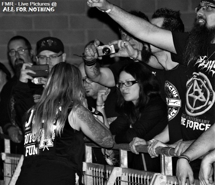 Cindy en profitera pour sauter dans le pit photo pour aller au contact de son public qu’elle aime tant. La communion est parfaite, All For Nothing avaient plus que leur place dans ce festival « metal » où pour certains leur présence eu semblé être en décalage mais il n’en fut rien, les jeunes coreux de Rotterdam s’adaptent à tous les terrains.