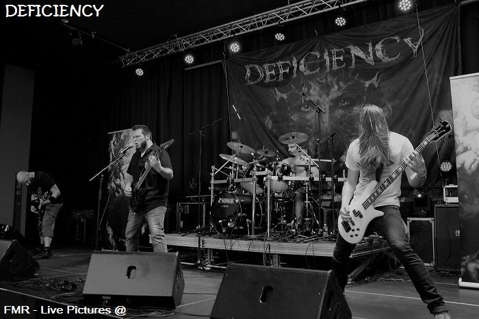 Nous allons maintenant commencer à grimper petit à petit dans les tours avec l’arrivée sur scène des lorrains de Deficiency qui nous viennent tout droit de Forbach et qui ne sont pas venus au Lions Metal Festival pour étendre le linge.