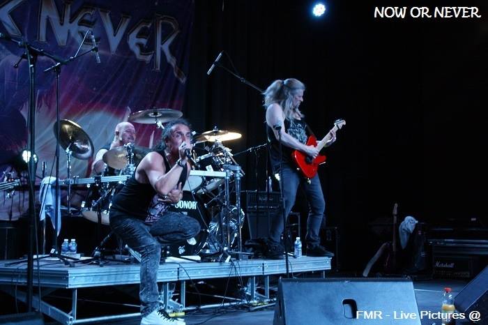 Jo Amore possède vraiment le timbre idéal de voix pour le vieux hard et le heavy metal. Pas besoin de chant à plusieurs octaves avec des envolées intempestives. La voix de Jo est suffisamment efficace pour embarquer le public qui semble galvanisé par ce véritable show d’une redoutable efficacité.
